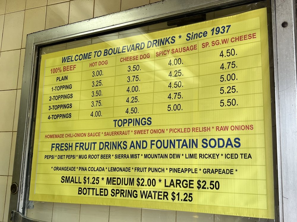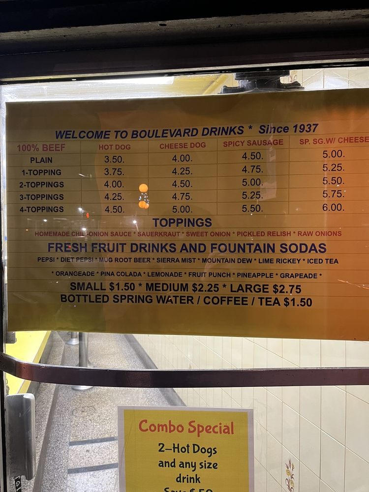 Located in Jersey City, Boulevard Drinks is a popular hot dog spot known for its 100% all-beef hot dogs and spicy sausages. Their menu includes options like a Grilled Hot Dog, Grilled Spicy Sausage, and Potato Knish, all of which can be customized with your preferred toppings. Customers rave about the quality and taste of the food, with reviews highlighting the delicious chili onion sauce, great pricing, and friendly service. The nostalgic feel of the place, reminiscent of old-school diners, adds to the charm of dining at Boulevard Drinks. With a diverse selection of beverages, including non-carbonated fresh fruit drinks and carbonated fountain sodas, it's a perfect spot for a quick and satisfying meal. Whether you're grabbing a bite to eat on the go or looking for a casual dining experience, Boulevard Drinks is sure to satisfy your hot dog cravings.